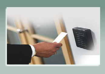 The most common door access control systems are with Smartcards or Key fobs. This works by granting or restricting access to any door, parking garage etc. (anything you don't want people to get into) by way of an electric locking device.